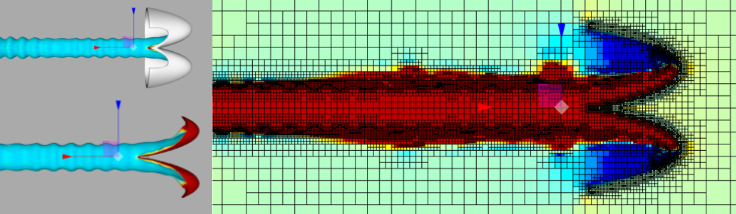 - Dissipation and distortion of STL bucket model during AMR refinement.